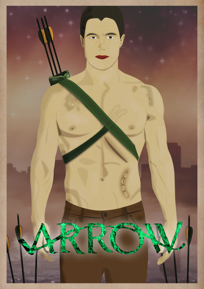 Se há série que eu neste momento sou fã e faço questão de ver sempre todos os episódios com atenção, é a série “Arrow” protagonizada pelo ator Stephen Amell que… meu Deus!! Ele é lindo de morrer mas, deixando a beleza do ator de lado, deixa-me ir ao que interessa. No passado fim-de-semana, resolvi pegar num dos posters da série, que estão muito bem criadas e através desse poster, resolvi recria-lo, vetorizando a imagem. O trabalho foi feito através do programa Illustrator da Adobe que para ser sincero, só mesmo no ano passado é que conheci esse programa e sozinho, já aprendi muitas coisas. Acredito que quando começar a ter formação no curso desse programa, possa aperfeiçoar muitas e muitas coisas mas… com aquilo que aprendi sozinho (vendo várias vídeo aulas através da net), o resultado foi esse: